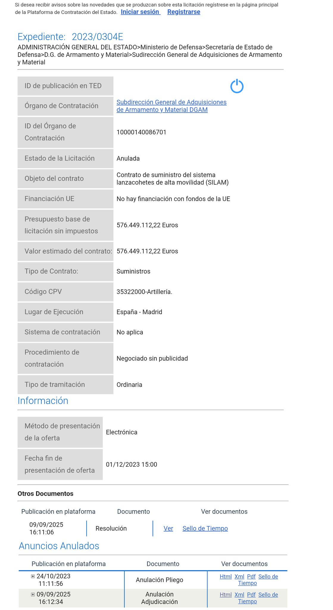 Estado: Licitación anulada.