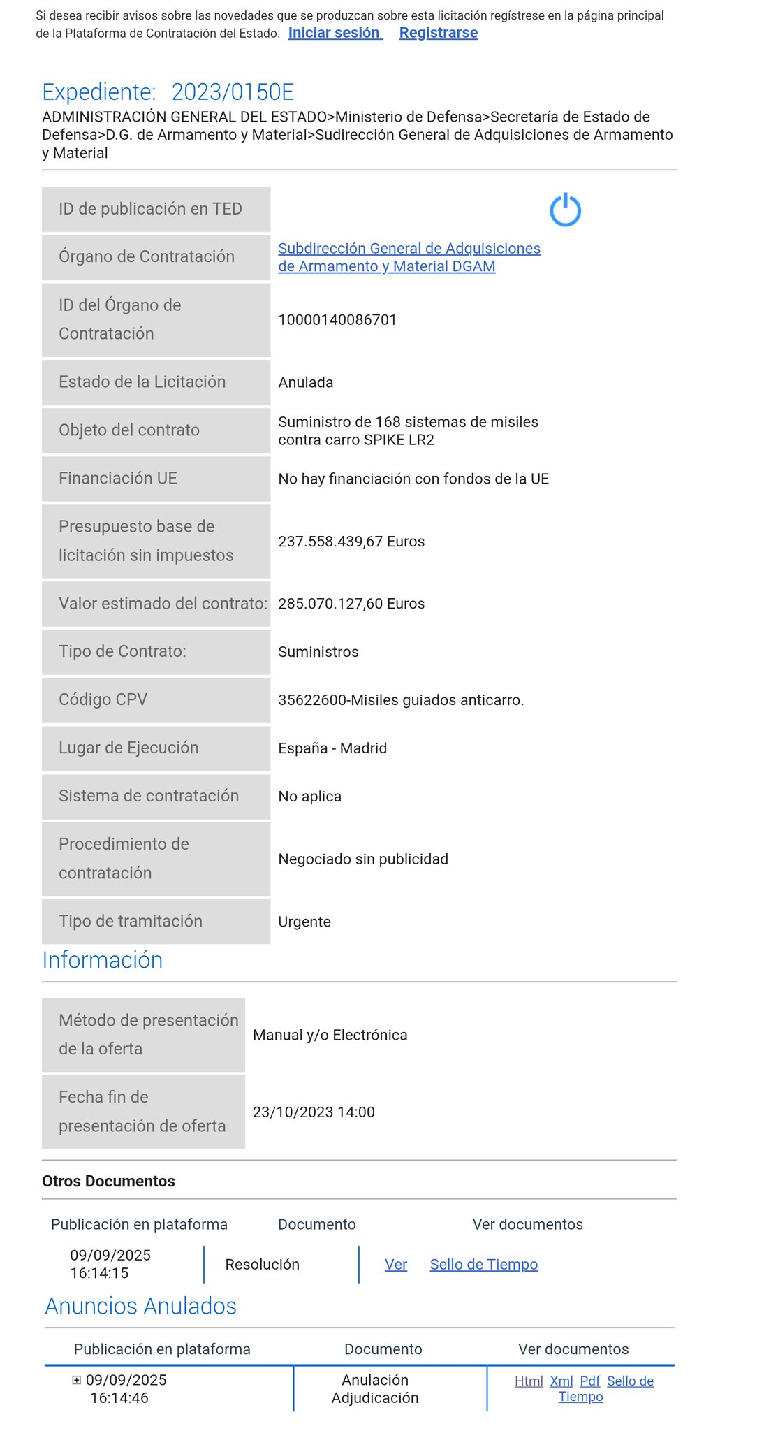 Fecha de presentación de ofertas: 23 de octubre de 2023.