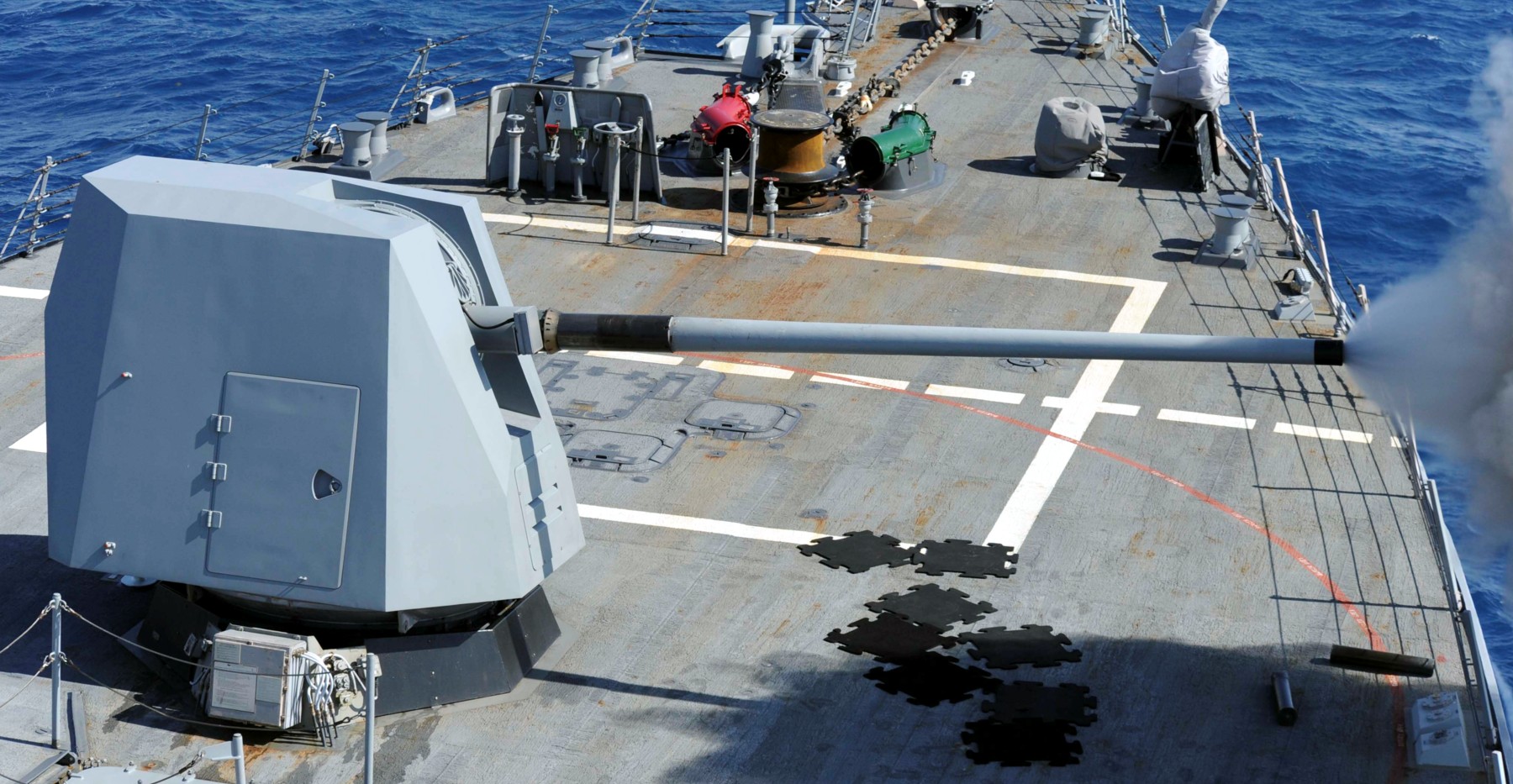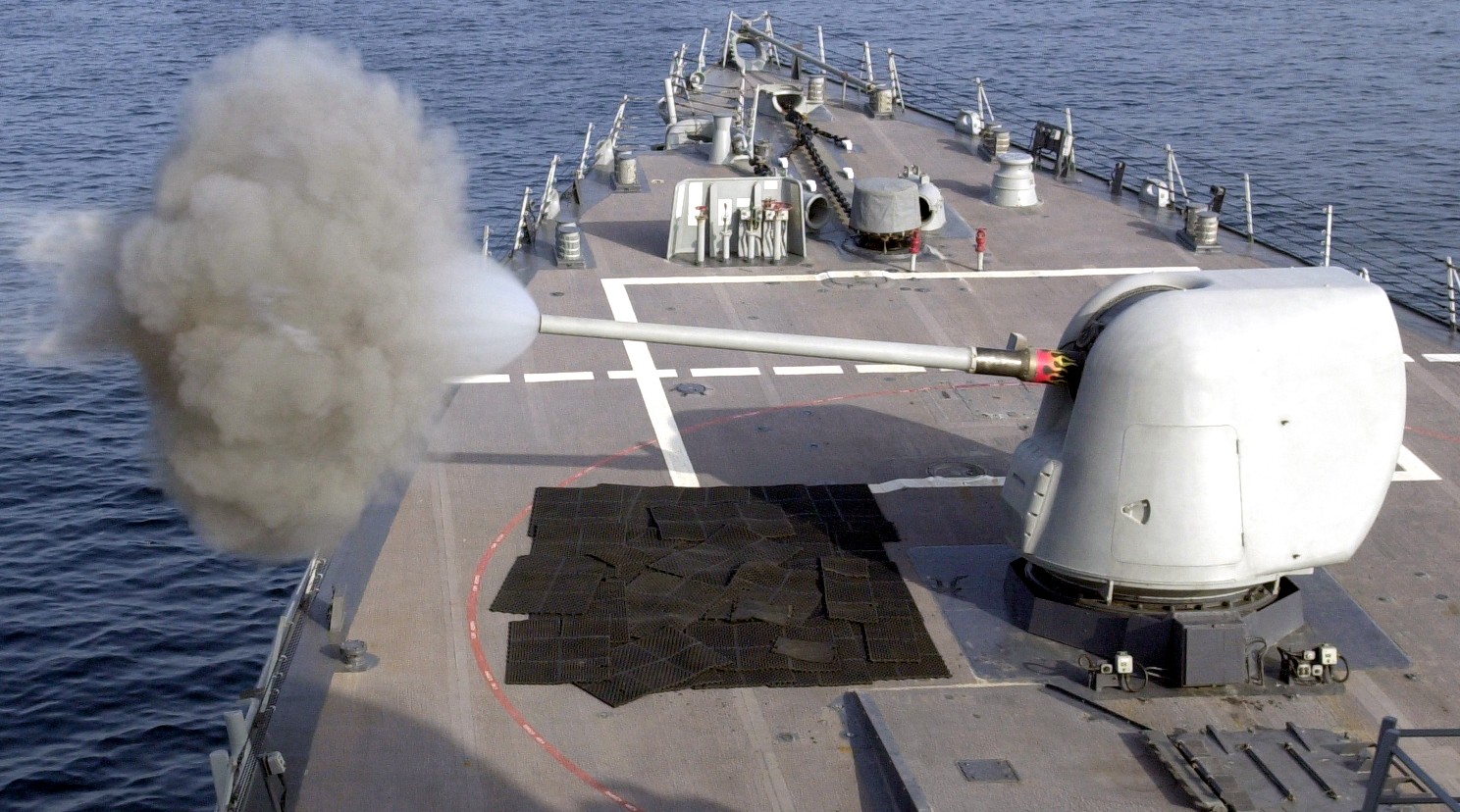 Un MK45 mod. 2 abriendo fuego desde el USS Curtis Wilbur (DDG 54). Foto: seaforces.org