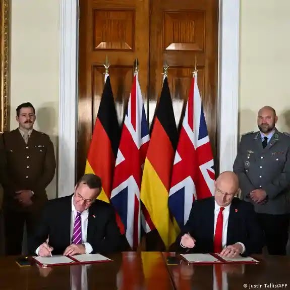 Foto: El ministro británico de Defensa, John Healey (dcha.), y el ministro alemán de Defensa, Boris Pistorius (izq.), firman el Acuerdo de Trinity House, Londres, 23 de octubre de 2024.
