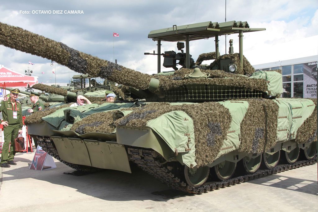 T-80 ruso con toda suerte de protecciones frente a drones. Foto : Octavio Díez Cámara