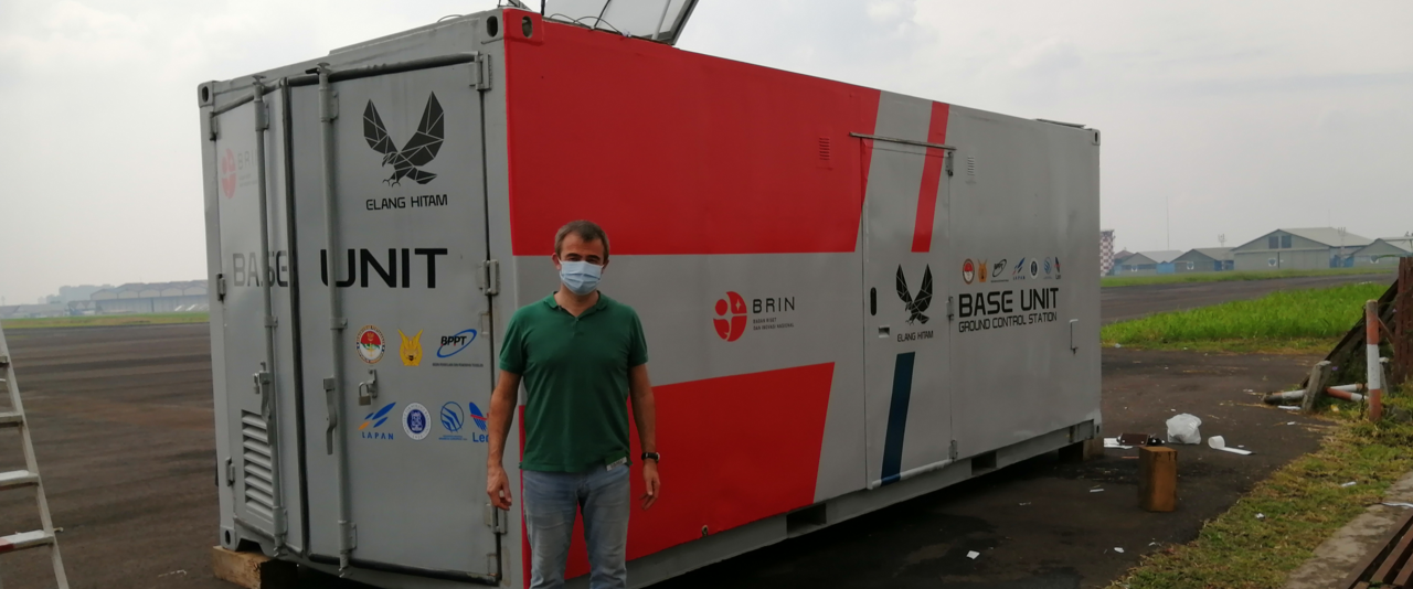 Miguel Ángel Gómez Arranz, fundador de MAGLINE, posando frente a una unidad de control en tierra durante las pruebas del MALE UAS