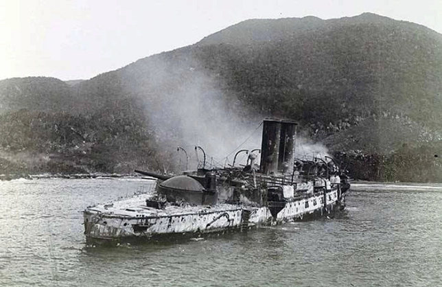 El crucero Oquendo tras la batalla de Santiago de Cuba