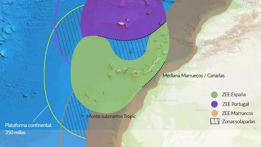 No se menciona que España también defiende su plataforma continental en la CLPC con argumentos científicos sólidos, basados en estudios del IGME que vinculan los montes submarinos —incluido el Monte Tropic— al margen geológico canario. No se menciona que España también disputa, por ejemplo, elementos de la ZEE portuguesa en torno a las Islas Salvajes. No se menciona que Canarias es la plataforma de seguridad euroatlántica más relevante al sur de Madeira, esencial para rutas marítimas y aéreas OTAN–UE, una seguridad que, si bien tiene dificultades efectivas para materializarse por parte de España, serían mucho mayores de recaer del lado marroquí.