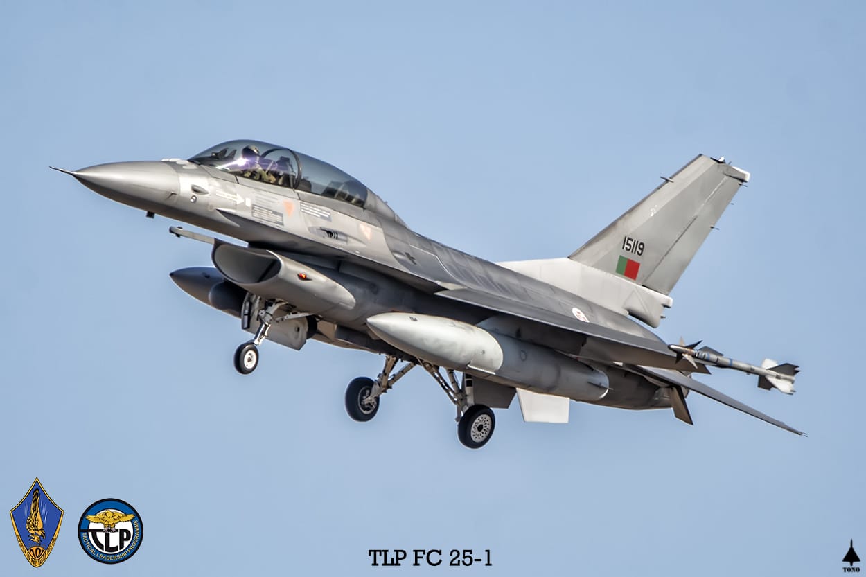 El Mayor Augusto «Prime» Figueiredo es el Comandante del Escuadrón 301 Jaguares y lidera el destacamento portugués que participa en el curso TLP 2025-01. El Mayor Figueiredo tiene una experiencia de vuelo de 2.000 horas, 1.700 de ellas en F-16. Para este curso Portugal ha desplegado cuatro F-16, tres monoplazas y un biplaza, con números de cola 15108,15112,15113, y 15119 el biplaza, pilotados por el Escuadrón 201 Falcōes y 301 Jaguares. Los aviones estaban equipados además de los depósitos auxiliares de combustible bajo las alas, con pods Litening III y EMC del Tipo AN/ALQ-131, configuración habitual en los aviones que participan en las misiones de FC. Los aviones carecían de marcas de identificación, salvo los emblemas nacionales.