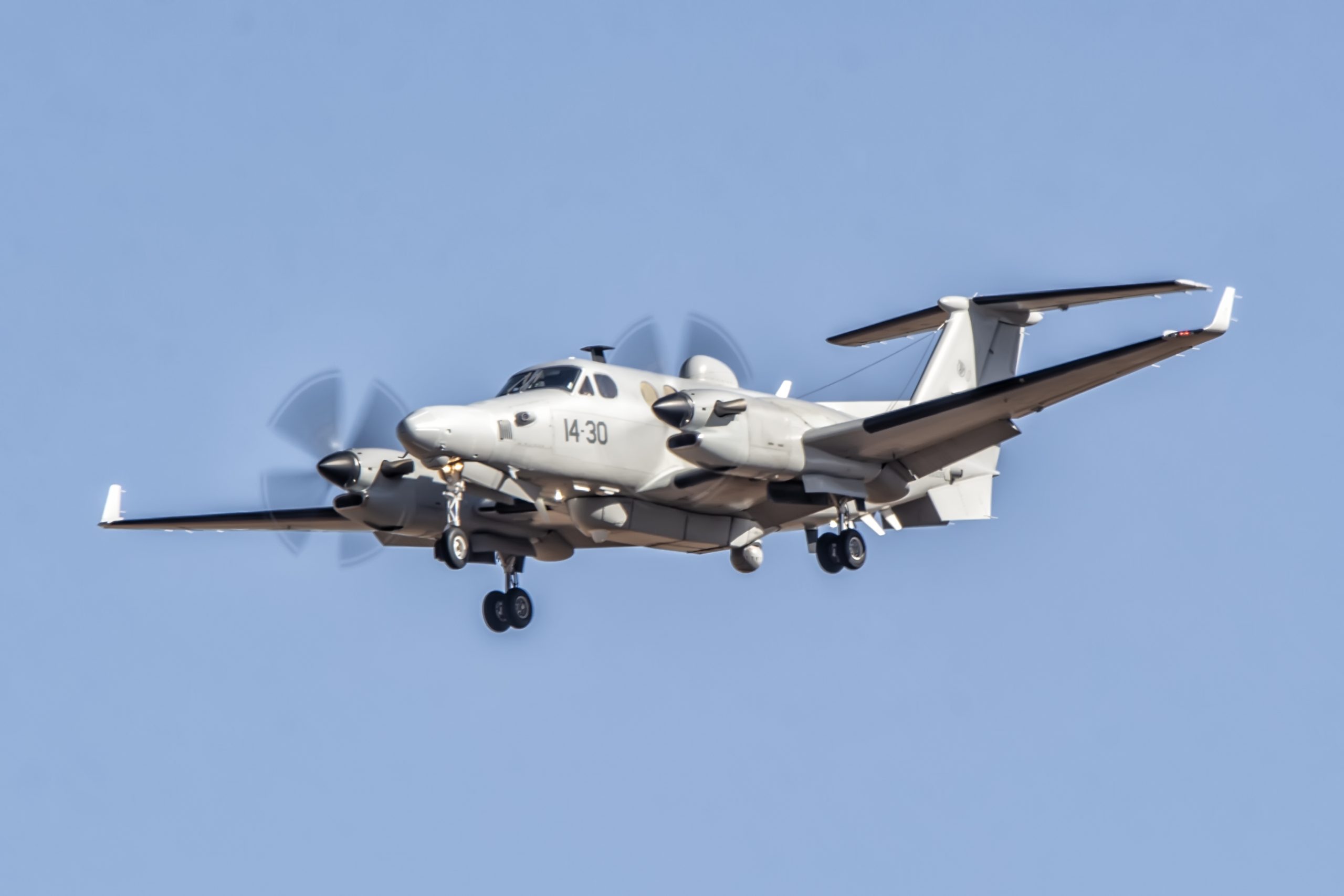 AMI Beech 350 Spydr (14-30) que realizó una breve actuación durante el curso TLP 2025-01. Este tipo de aeronave es la primera vez que participa en el programa. Foto Tono Fernández