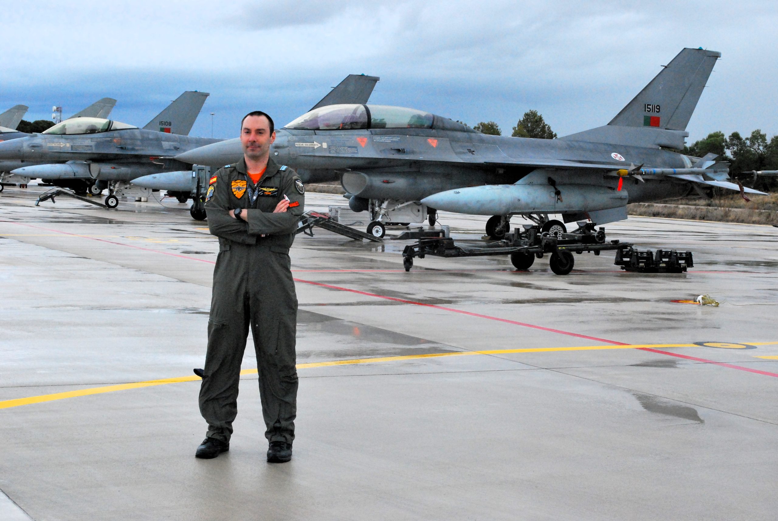 R. He estado volando el F-16 desde 2010, así que desde hace 15 años. Hice el camino de convertirme en líder de formación de dos naves y después de una misión de liderazgo de cuatro naves, comandante de misión aquí en TLP, y también instructor. Y desde entonces, he tenido la oportunidad de participar en varios ejercicios internacionales. También he realizado varias misiones de política aérea en el Báltico, que Portugal ha estado realizando con mucha frecuencia. También pasé tres años en la OTAN como oficial de Estado Mayor del Centro de Mando y Control Aéreo Desplegable DACCC, en Poggio Renatico (Italia). Más tarde también pude formar parte del componente aéreo de la Fuerza Conjunta (JFAC) cuando se activó al comenzar la invasión de Ucrania en 2022. Ahora estoy de vuelta en el componente de vuelo como oficial al mando del Escuadrón 301, y justo en estos momentos tengo el privilegio de estar de vuelta en TLP como comandante de destacamento de la Fuerza Aérea Portuguesa.