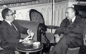 El secretario de estado Henry Kissinger visitó al presidente del gobierno, Luis Carrero Blanco. Esta es una de las últimas fotos de Carrero, que moriría al día siguiente en atentado. Foto: rtve