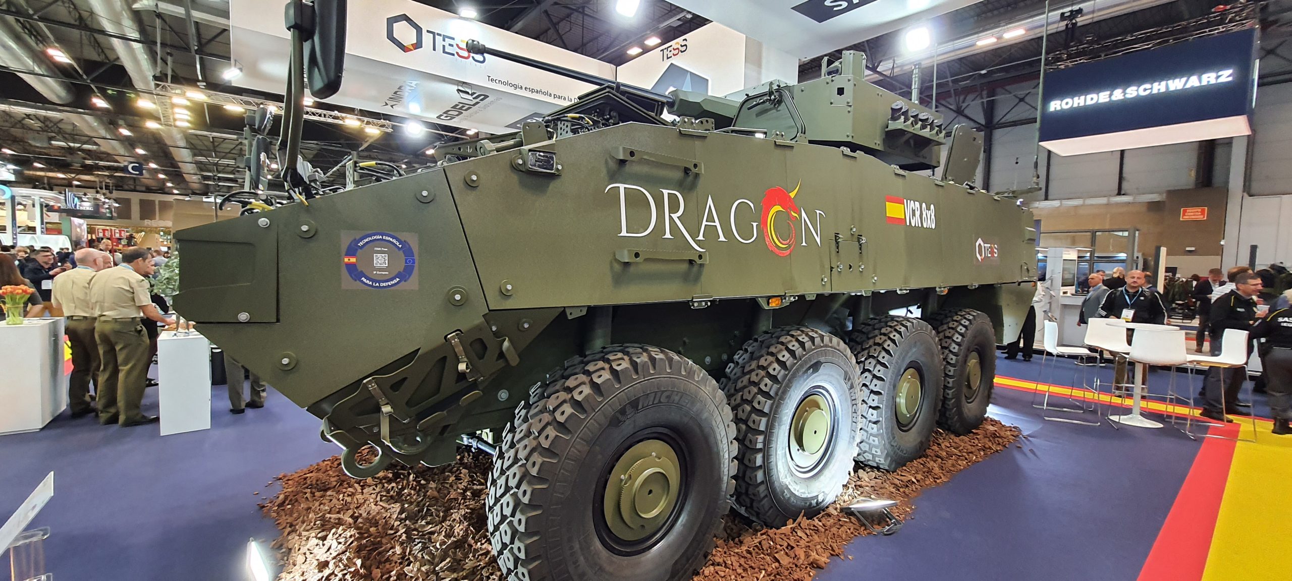 Sobresalieron entre todas las demás, a las que hicieron pequeñas, las robustas siluetas de los Dragón 8×8. Circulando por sí mismos o siendo transportados (dependerá de a quién se le pregunte), los Dragón ocuparon sus espacios por el amplio y generoso área de la Feria madrileña. Era imposible no toparse con uno de ellos a poco que te desplazaras por cualquiera de los pabellones.